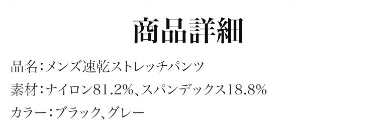 メンズ速乾ストレッチパンツ